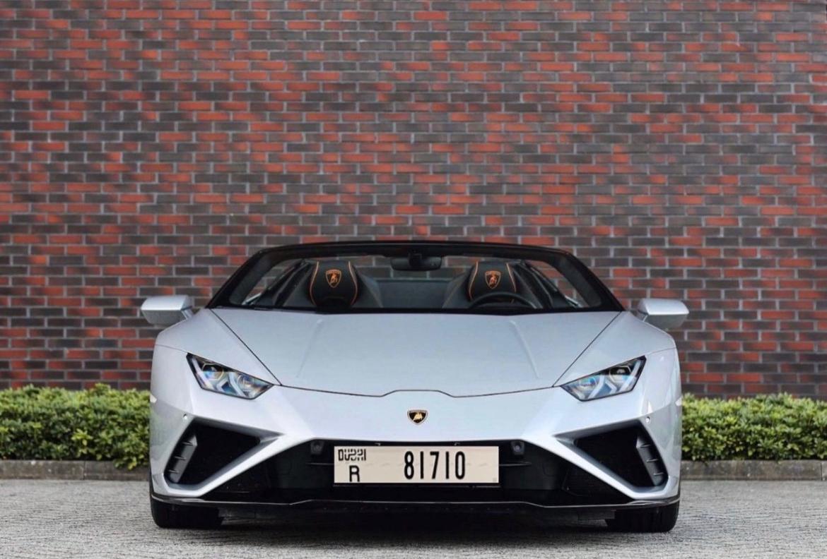 Louez et conduisez ce modèle Lamborghini Huracan Evo Spyder à Dubaï, pour 3 200 AED/jour et 65 000 AED/mois. Le coût de la location comprend l’assurance tous risques de base et la limite kilométrique standard de 250 km/jour (20 AED par km supplémentaire applicable). Un dépôt de garantie de 5 000 AED est demandé. Contactez Burnout Rent A Car directement pour les réservations et les demandes de renseignements.